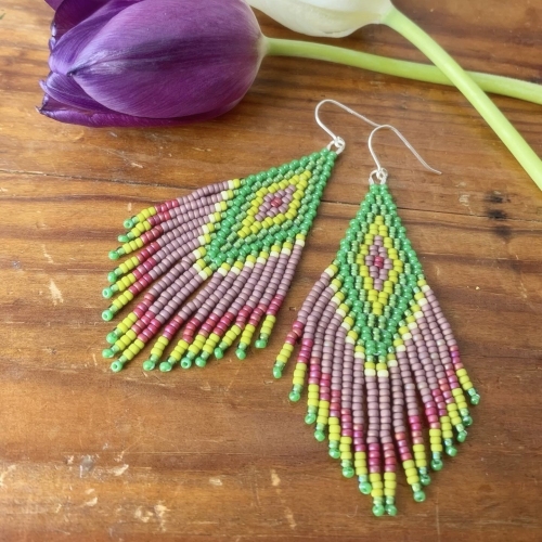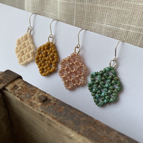 När en design väl sitter lägger jag konstnärlig omsorg i att kombinera färger, mönster och pärlor med olika finish. De små pärlorna jag använder är av högsta kvalitet, tillverkade med återvunnet glas och kommer från Miyuki, som är en av Japans äldsta tillverkare.