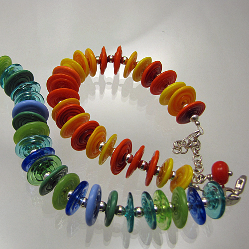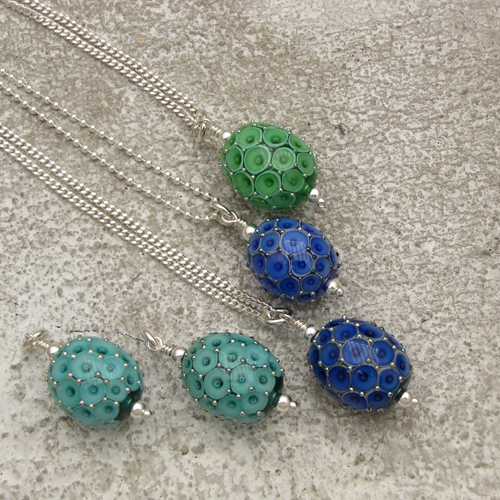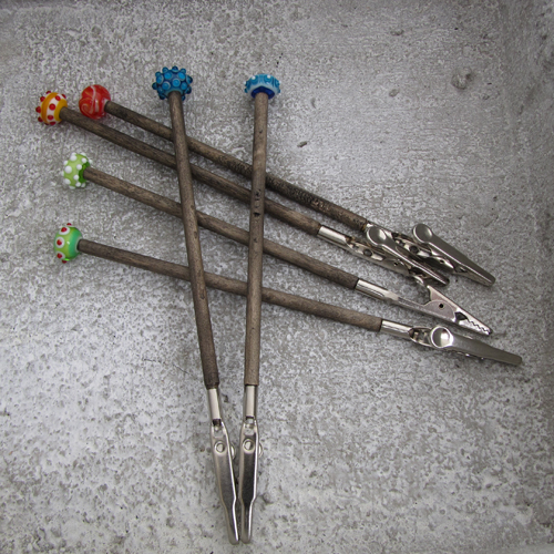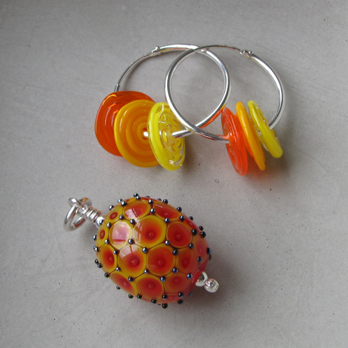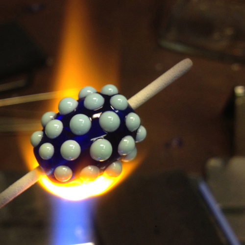Jag jobbar med en teknik som kallas lampwork och smälter glas över en gasolflamma.